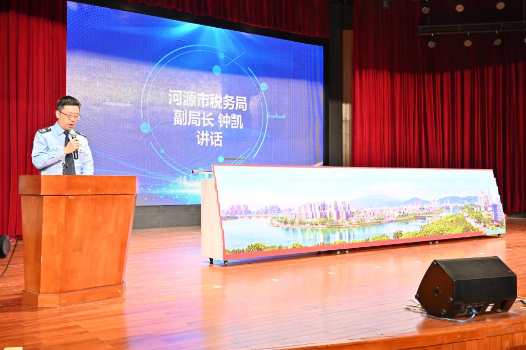 “今天的‘赋源青年梦想展翅’税法宣传进高校活动既是服务青年,也是向青春借力,让同学们充分了解创业就业税收优惠政策,助力大家走稳走好创业就业第一步。”河源市税务局办公室主任李豪杰表示,在第33个全国税收宣传月期间,全市税务系统将紧紧围绕“税助发展 向新而进”宣传主题,陆续推出“云端普法 共话税宣”“万屏联动 点亮税宣”等一系列内容丰富、形式多样的宣传活动,让税收知识学得更生动、税费理念思想更深入、税法普及用得更广泛,为河源加快实现绿色崛起贡献税务力量。