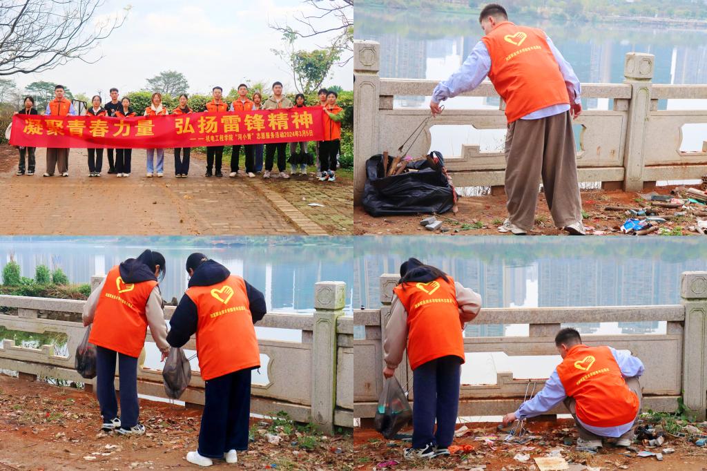 工商管理学院团委联合中国人民银行,在学校东门进行反洗钱及金融相关的法律法规知识的宣传活动,通过派发宣传单等方式,让群众了解日常金融知识;组织学生志愿者做好2024年河源国家高新区企业高质量发展大会大型会务服务工作。人文艺术学院团委组织志愿者,前往深河医院开展义务导诊志愿服务活动,用青春力量为就医患者提供便民服务。机电学院团委组织“河小青”志愿服务队前往美丽的东江河畔,开展护绿护水志愿服务活动,用实际行动助力绿美河源建设。电信学院团委开展家电义务维修进小区志愿服务活动,用专业知识切实为小区居民解决生活难题。老隆师范学院团委组织学生志愿者服务队,前往市博爱学校开展送爱心送温暖活动,通过文艺表演的形式为博爱学校同学们带去美好祝愿,传递积极向上的精神风貌,践行雷锋精神。校国旗护卫队前往东江首付标点幼儿园开展“大手拉小手”国旗知识进校园志愿活动,通过举行升旗仪式、操练展示,让国旗的星光照耀在孩子身上。