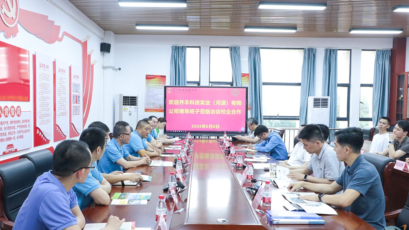 6月6日下午,乔丰科技实业(河源)有限公司(以下简称乔丰科技公司)董事长刘海杜一行来访我校,与学校签订校企合作协议。韦荣书记、科研处廖远兵处长、机电工程学院相关人员参加活动。