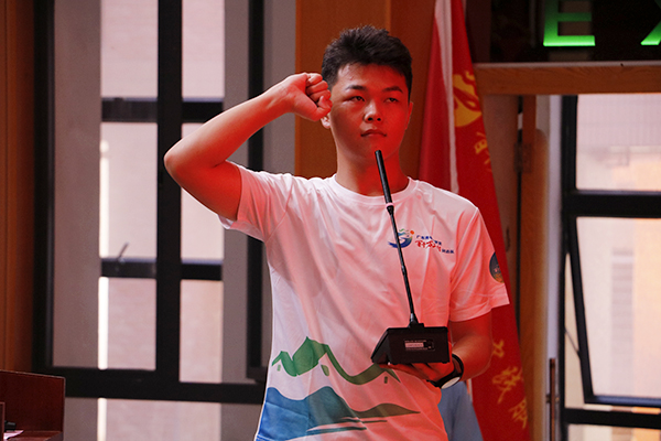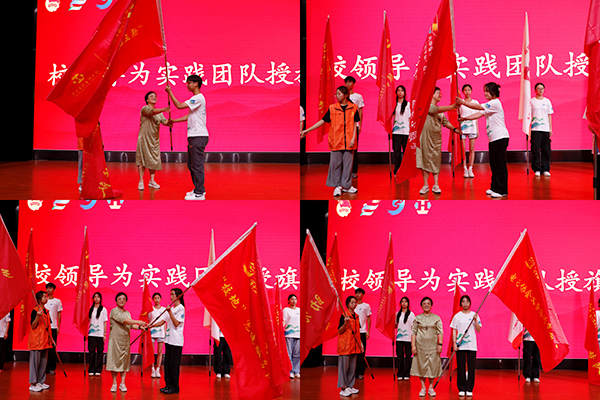 随后,姚家芳为实践团队代表授旗并宣布实践团队出征。指导教师代表黄秀丽、社会实践团队学生代表谢伊琼先后发言,杨旭辉同学带领现场所有实践团队成员进行集体宣誓。