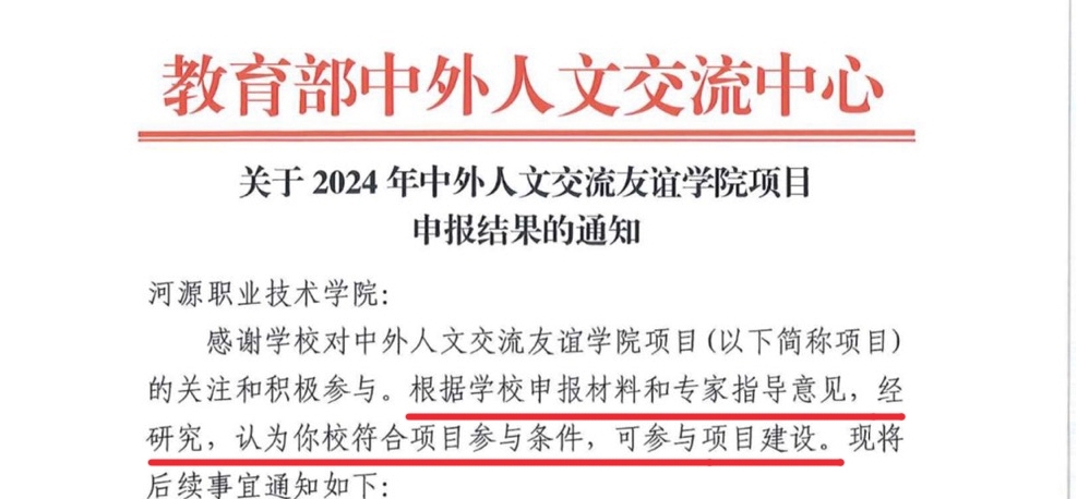 近日,我校传来喜讯,经教育部组织项目遴选和专家评审,BTY.COM成功获得教育部“中外人文交流友谊学院”项目的立项,全国仅有54所高校获得立项。这标志着学校在推动“职教出海”和深化“一带一路”沿线国家教育合作方面迈出了重要一步,为学校国际化发展注入了新的活力,也是学校国际化办学的重要里程碑。