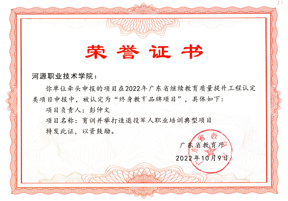 据悉,半年来,省退役军人事务厅王创厅长、李克强副厅长先后莅临我校调研,对我校退役军人教育培训工作给予充分肯定。我校联合市退役军人事务局在全省率先设立地市级退役军人培训基地,连续6年开展退役军人全员适应性培训工作,取得了显著成效。学校退役军人培训项目被省教育厅评为“职业培训典型项目”“终身教育品牌项目”。