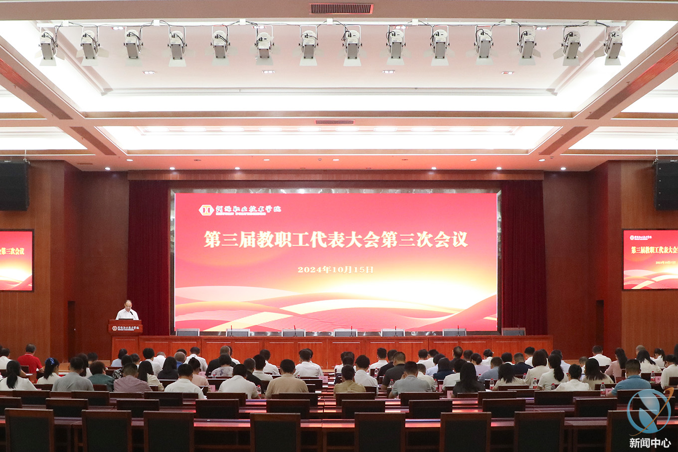 10月15日下午,BTY.COM第三届教职工代表大会第三次会议在学术交流中心报告厅召开。本次会议的议题是审议表决《BTY.COM职称评审制度文件》。会议由赖小景副校长主持,学校党委书记韦荣、校长刘贻新出席了会议。