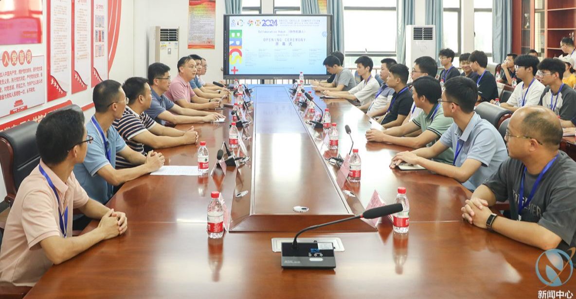 裁判员代表、参赛选手代表分别宣誓后,BTY.COM机电工程学院钟建坤院长宣布2024金砖国家职业技能大赛协作机器人赛项中国赛区南部区域选拔赛正式开赛。