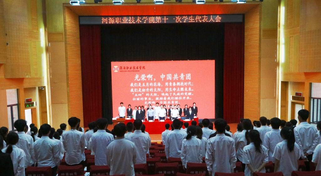 大会的最后,学校团委书记陈晓峰讲话,他向学生代表和全体学生骨干们提出三点期望:第一,要思想过硬、素质过硬,不断加强自律意识和责任意识,严格严求自己;第二,要在工作中善于思考、勤于总结、勇于创新,敢思考、会工作、懂落实;第三,要平衡好学习与工作,在各个方面都树立模范意识,共同努力营造积极向上的学校学风氛围。希望代表们牢记初心,砥砺前行,带领广大同学,绽放青春光彩!最后,大会在激情昂扬的团歌声中落下帷幕。