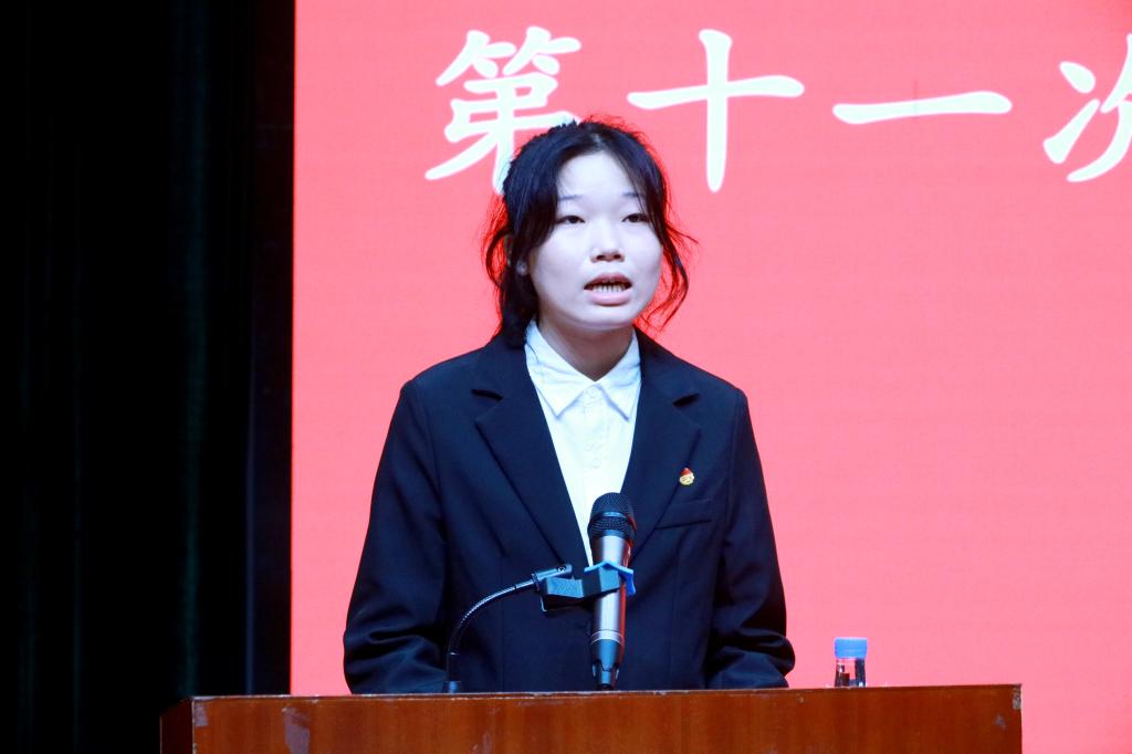 在正式会议阶段,林泽华同学代表第十届学生会作《BTY.COM第十届学生会工作报告》。报告全面回顾了第十次学代会以来,我校学生会取得的成绩和经验,同时对学生会在新时期的奋斗目标和工作计划进行汇报。李宇霏同学代表第十届常任代表委员会作《BTY.COM第十届常任代表委员会工作报告》。