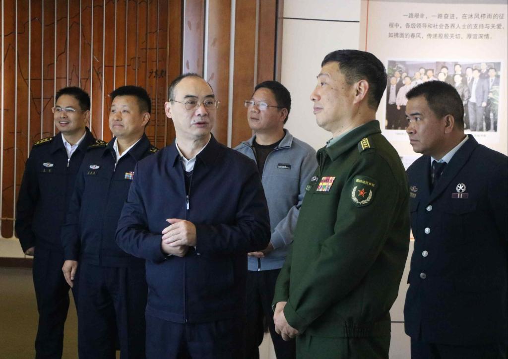 黄新司令员一行首先来到学校校史馆、军事社团活动室、兵员预征预储室、学校武装部(征兵工作站)等国防教育场所,在宣传部黄舒副部长、征兵工作站黄旺庆站长的详细讲解下,深入细致的了解我校自1930年建校至今的办学历史,实地调研大学生征兵和国防教育工作落实情况。