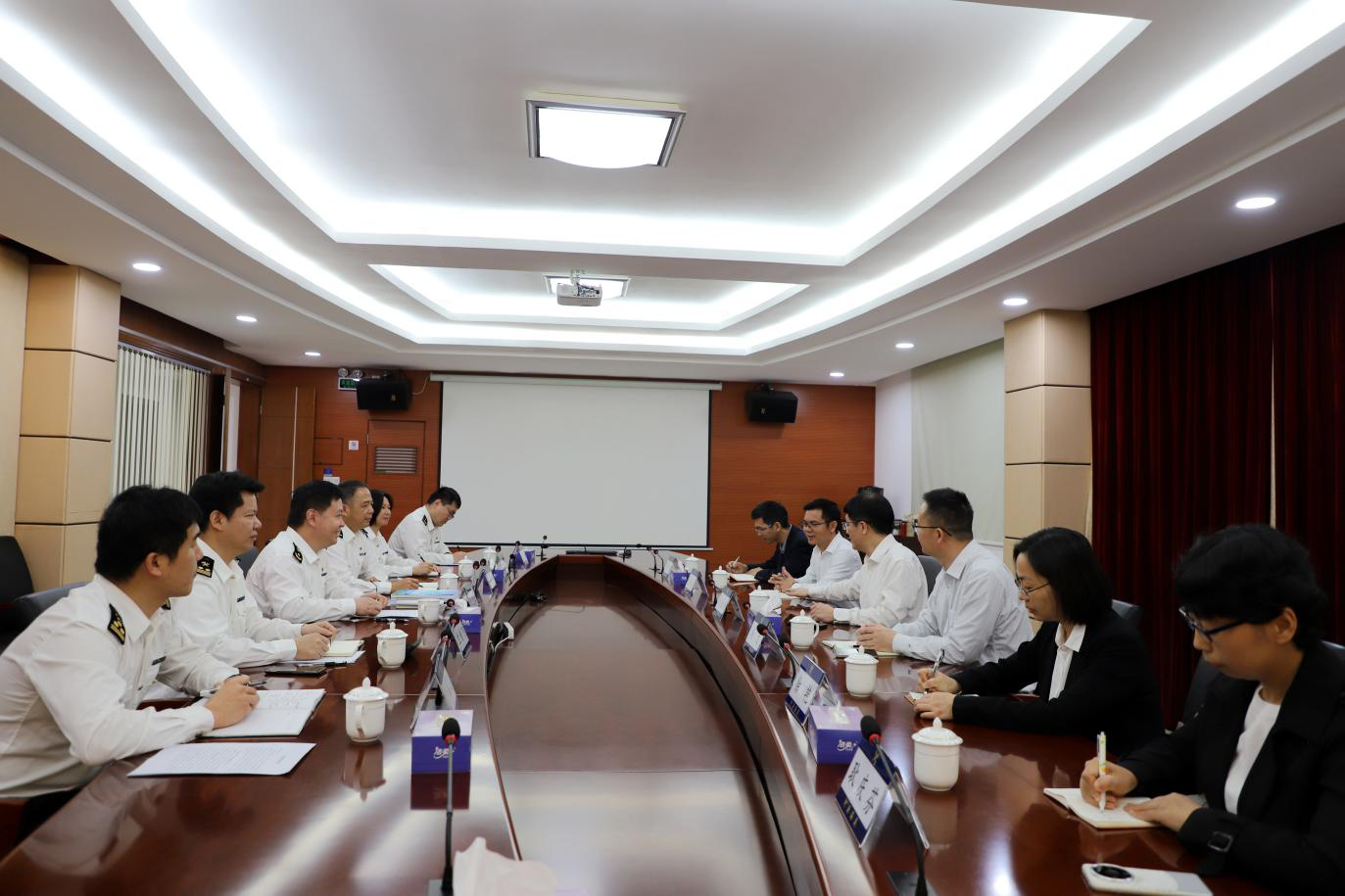 参观结束后,双方开展了座谈。河源海关关长刘志红对刘贻新校长一行的到来表示热烈欢迎。刘志红关长指出,随着制造业的不断升级和发展,高职院校在培养高素质技能人才方面发挥着越来越重要的作用,河源海关希望与BTY.COM加强合作,在人才培养、科研创新、实践教学等领域开展全方位合作,充分发挥海关的资源优势和学校的教育优势,共同培养适应制造业发展需求的专业人才,为制造强国贡献力量。接着,刘志红关长详细介绍了海关的发展历程、工作现状以及面临的挑战和未来发展趋势。他强调,随着国际贸易的不断发展和全球经济的深度融合,海关工作面临着越来越复杂和多变的环境。河源海关将不断加强自身建设,提升服务水平和监管能力,为地方经济发展保驾护航。刘志红关长还从服务发展、干部能力建设、综合保障三个方面阐述了河源海关的主要工作,他表示,河源海关将积极履行职能职责,为地方经济发展提供优质服务和有力保障。