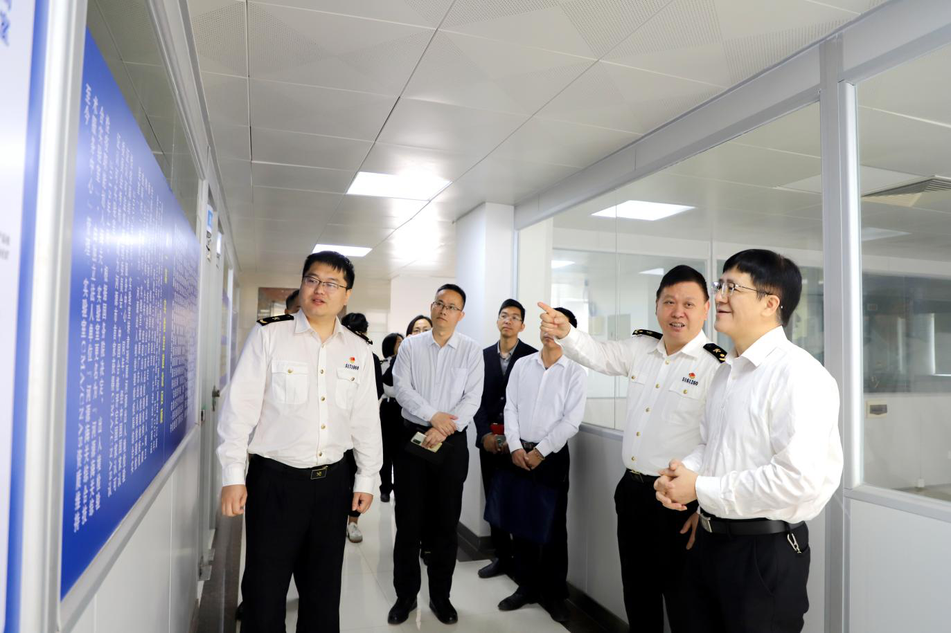 随后,一行人在海关工作人员的引导下,认真听取了海关工作展板讲解,从河源海关的历史沿革、组织架构、荣誉创建以及国门印记-河源海关2024年工作亮点等多个维度,全面展示了河源海关在促进地方经济发展、维护国门安全、优化营商环境等方面所发挥的重要作用。通过讲解,学校一行对海关工作有了更为系统、全面的认识,为后续探讨双方合作方向奠定了基础。