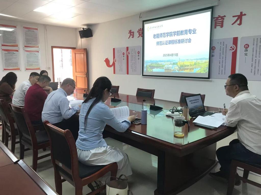 4月15日下午,老隆师范学院在艺术楼A201召开学前教育专业人才培养方案与课程标准研讨会,袁光华副校长、老隆师范学院负责人、教务处及相关人员出席研讨会。会议围绕师范认证要求和教育部近期发布的学前教育专业教学标准,就人才培养方案和课程标准进行了深入研讨。