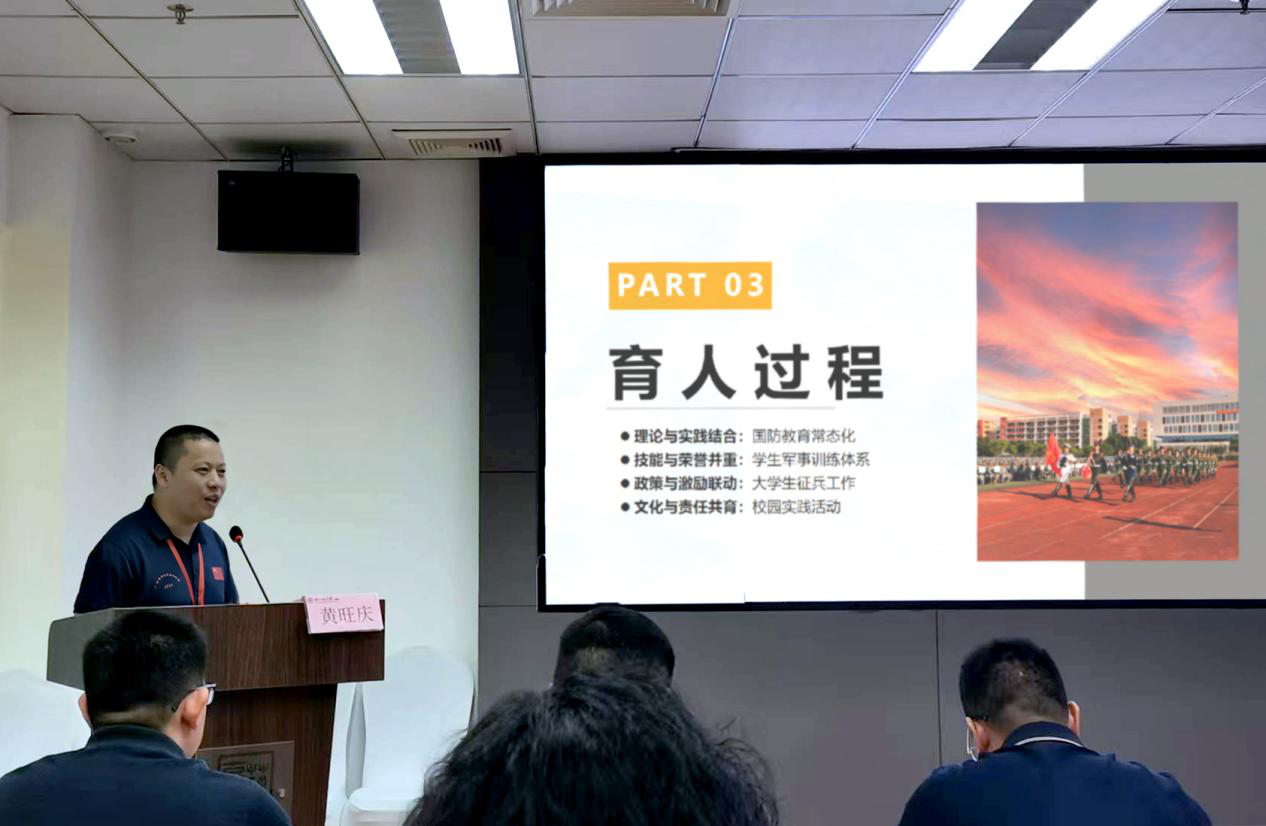 本次研修班汇聚了全市“国防教育进校园”讲师团成员代表、国防教育讲师培养对象约50人,采用专家讲座、经验分享、现场教学等多种丰富形式开展。我校黄旺庆老师在分享环节中,以《国防教育引领四位一体育人》为主题,详细介绍了BTY.COM在国防教育方面创新推行的“四位一体”育人模式,包括理论与实践结合、技能与荣誉并重、政策与激励联动、文化与责任共育等多个维度,充分展现了学校在国防教育领域的积极探索与卓越成效,其分享内容引发在场众人高度关注,大家纷纷对我校在国防教育工作上的出色表现给予充分肯定与赞赏。