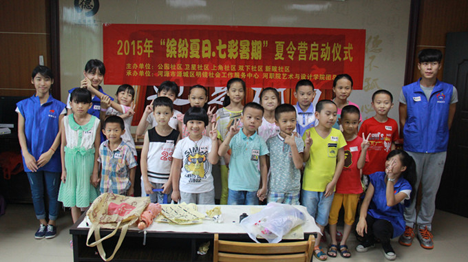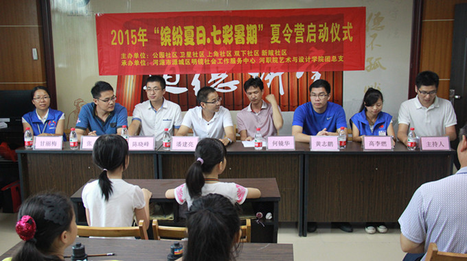 7月20日下午,艺术与设计学院团总支在源城区公园社区开展“缤纷夏日,七彩暑期”夏令营启动仪式。校团委与艺术与设计学院相关负责人、上城街道办事处与公园社区居委会负责人、河源市明镜社会工作服务中心全体工作人员、夏令营全体学生、家长代表以及全体志愿者参加了此次活动。