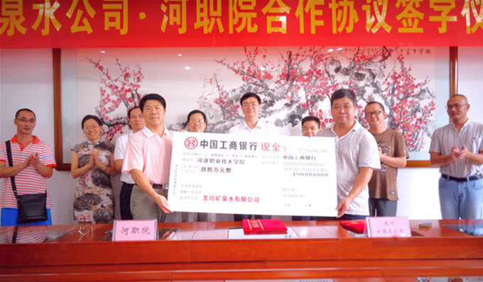 7月23日下午,我校与龙川矿泉水有限公司举行合作签约仪式,校长刘安华与公司董事长谢秋芳共同签署了合作协议书。校党委书记段邦贤,副校长唐汉芳,副书记韦荣出席了此次签约仪式。
