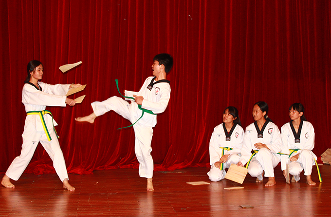 随后,多姿多彩的文艺节目轮番上演。校园十大歌手之一廖鹤翔以深情浑厚的嗓音演唱《漫步》,直接调动起现场气氛;轮滑协会凭借娴熟的技巧、高超的旋转的功底展现得淋漓精致,观众掌声不断;由海燕话剧社精心准备的幽默小品更是未演先热,女儿尽孝过程中所发生的幽默情节逗乐了现场的观众。