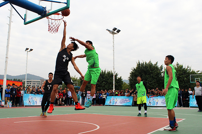比赛采用三人篮球竞赛规则,与分组循环积分制相结合。比赛现场气氛火热,赛况激烈,吸引了众多同学驻足观看,各组球员将娴熟的篮球技能、默契的团队配合度展现在观众面前,完美的扣篮更是获得场下观众阵阵掌声与欢呼。