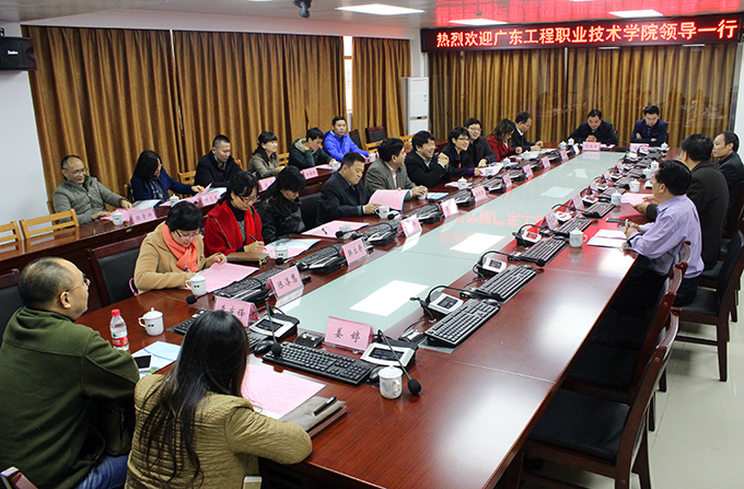 1月13日上午,广东工程职业技术学院校长刘安华一行到我校交流学习,在我校行政楼B601召开交流座谈会。我校党委副书记韦荣,副校长陈德清,党政办公室、学工处相关负责人参加了此次交流会。座谈会由副校长陈德清主持。