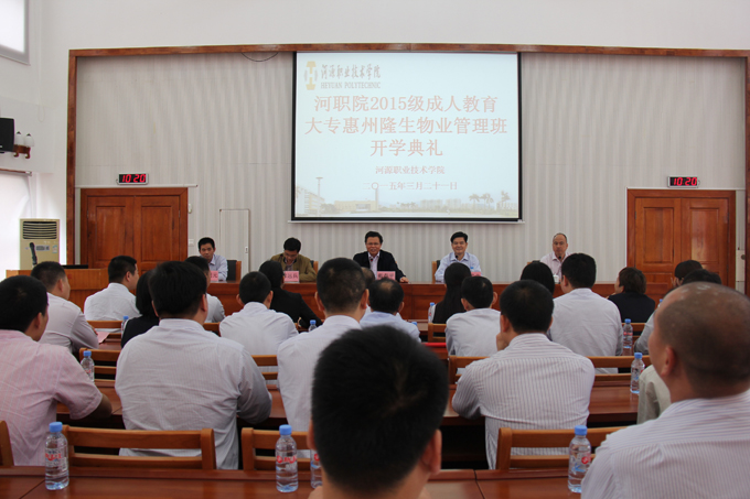 3月21日,我校2015级成人大专惠州隆生物业管理班开学典礼在行政楼C108举行,惠州隆生物业管理有限公司罗武声总经理、我校继续教育学院有关负责人出席了典礼。