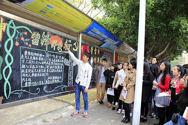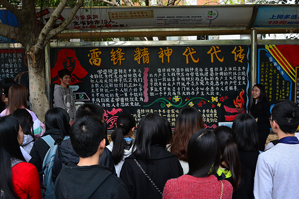 据悉,此次活动是为了响应“行动月”的号召,引导我校学子树立正确的人生观、价值观,弘扬“人人为我,我为人人”的雷锋精神而开展的主题系列教育活动之一,活动得到了各学生组织和各二级学院积极响应。板报主题鲜明、布局美观、图文并茂,全面地介绍了雷锋全心全意为人民服务的高贵品质,使同学们体会到雷锋精神的真实含义,营造出了浓浓的学雷锋氛围。