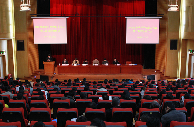 3月7日,我校在学术报告厅召开2015春季开学教职工大会暨二届四次教代会,会议由副校长赖小景主持。