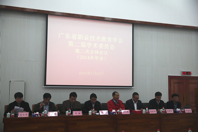 广东省职业技术教育学会2014年学术年会于1月23至24日在我校召开。会议突出研究我省职业教育服务产业转型升级以及中高职衔接模式的探索与创新,会期一天,内容包括全国职教学会2014年会精神传达、专家组论文评审、专题报告、第二届学术委员会2014工作总结暨2015工作与设想报告等。