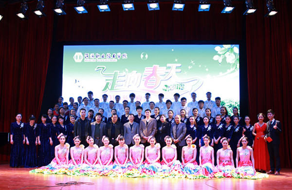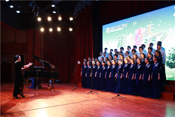 闭幕式后,一曲歌伴舞《阳光路上》拉开了“走向春天”2015新年晚会序幕。悠然活泼的《丰收锣鼓》,清脆欢快的《扬鞭催马运粮忙》,奔腾激昂的《赛马》,优美动听的《阿美族舞曲》,让现场观众深深陶醉于古筝、竹笛、二胡的动人旋律中;舞蹈《花语》,曼妙的舞姿带给观众赏心悦目的视觉享受;真挚热情的歌曲《跟你走》、《鼓浪屿之波》、《Time To Say Goodbye》,新颖别致的朗诵《万绿湖》赢得了观众的热烈掌声;明朗圆润的女声合唱《山楂树》、《乘着歌声的翅膀》将晚会推向高潮。最后,晚会在教工合唱团带来的大合唱《香格里拉》、《四渡赤水出奇兵》中落下帷幕。