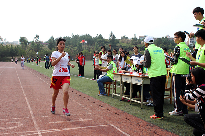 伴随着主席台播报员激昂的加油声,运动员们目光坚定,脚步稳健,展现你争我夺的竞技风采。