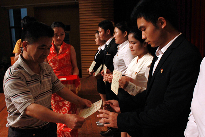 晚会伊始,人文学院副院长罗春娜宣读五四表彰决定,接着,“优秀团干”、“五四红旗团支部”等受表彰的优秀团体和学生代表上台领奖。