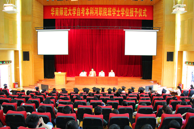 继续教育学院相关工作人员、第一批学士学位获得者及华师大2012秋、2013秋季自考沟通班部分学生参加了仪式。
