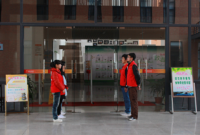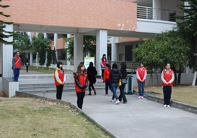 此次“美丽校园”行动是学校综治办联合学生工作处、团委、各二级学院和中峻物业共同开展,主要针对校园乱丢乱吐,带早餐等食物进教室、实训室和送外卖快餐进宿舍等不良卫生和行为习惯进行专项教育和引导。活动将从本月启动持续至学期结束,共分宣传教育,集中清理、重点劝导,完善工作机制,评比考核四个阶段进行。在重点劝导阶段,学校将在校园各主要通道和教学、实训场地入口处设立劝导点,由志愿者对带早餐的同学进行提醒和劝导,使同学们逐渐改变带早餐进课室、进实训室的习惯,提高爱我家园、自觉维护校园环境的意识,养成良好行为习惯。