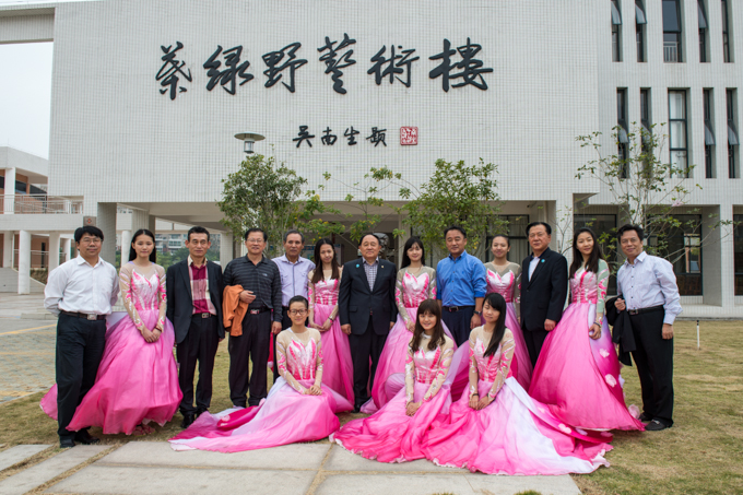 参观结束后,黄银性与刘安华互赠了各自亲笔签名的纪念品。一行人还在图书馆及叶绿野艺术楼前与我校师生合影留念。