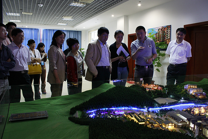 刘安华等人还在企业相关负责人的陪同下参观了项目沙盘模型、公司员工宿舍、企业文化及施工现场,进一步了解庄园的基本构造及企业管理情况。