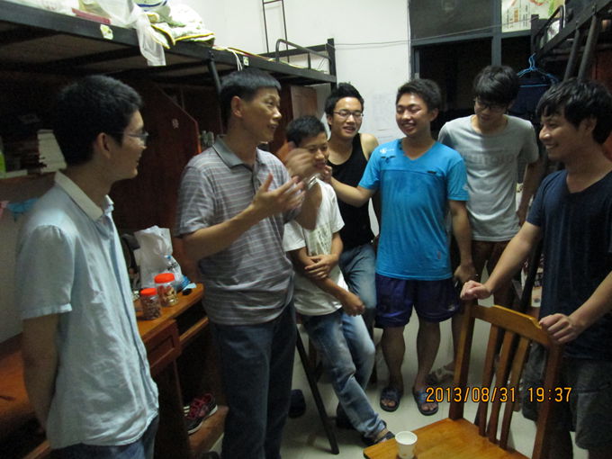 近日,学校继续深入开展党的群众路线教育活动。8月31日晚,学校党委书记高仁泽以助理辅导员身份和机电工程学院辅导员黄章华走访部分学生宿舍。高仁泽一行共走访了5个班近60间宿舍,与60多位同学交流谈心。