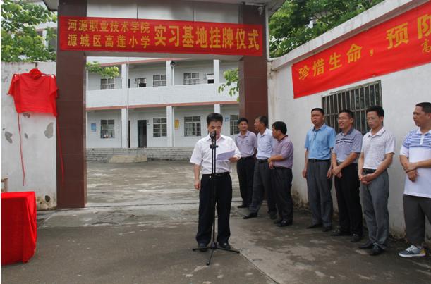 6月25日上午,我校师范教育专业源城区高莲小学实践教学基地举行签约、挂牌仪式,副校长唐汉芳,科研处、人文学院负责人出席仪式。