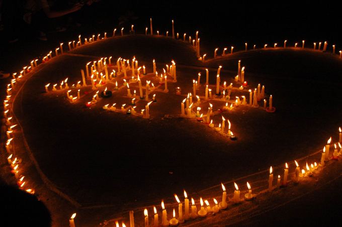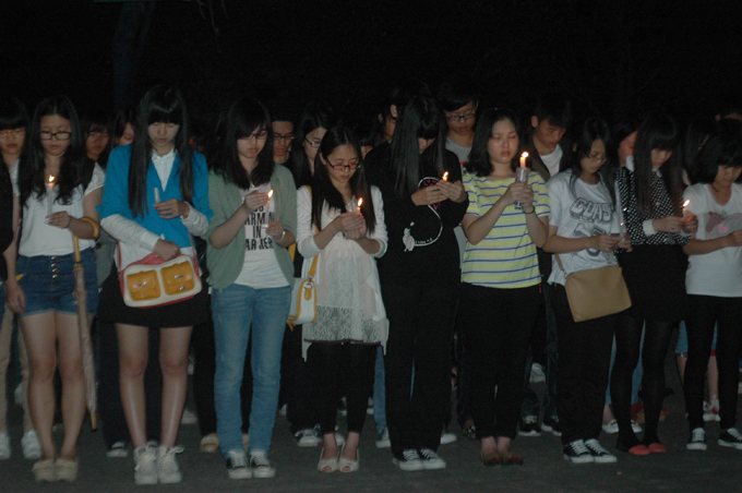 据悉,4月24日晚,我校爱心协会在学生篮球场还发起了“震灾无情,人间有爱,祈福雅安,你我同在”为主题的祈福活动。三百余名我校学子点燃手中的蜡烛,将蜡烛在地上摆成爱心形状,展现出“雅安”字样,带着一颗虔诚的心为雅安遇难的同胞默哀,为生者祈福。
