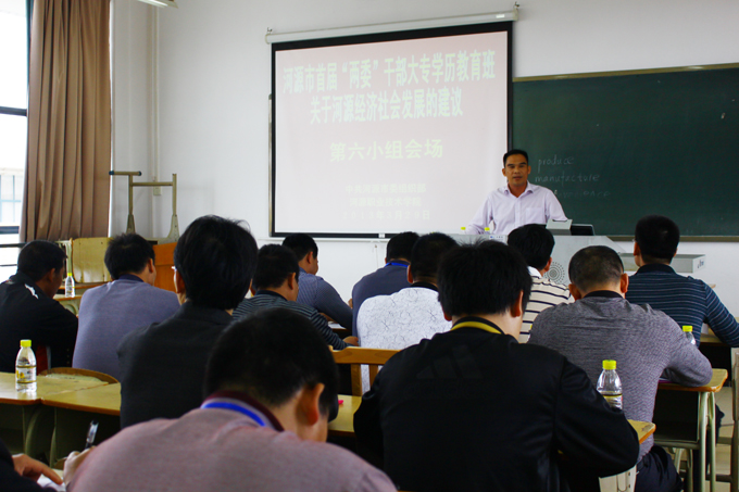 3月29日、30日,河源市首届“两委”干部大专学历教育班于我校学术报告厅首次开课,河源市委副秘书长、市社会工作委专职副主任孙宇红和我校副校长赖小景分别为学员授课,来自五县一区的355名“两委”干部聆听了此次课程。