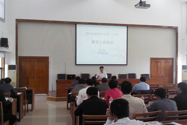 会议对学校2012年教学工作情况进行总结,对2013年教学工作进行全面部署。并详细解读了二级学院评价指标新体系及教学工作周历等文件。最后,副校长陈德清组织学习了温州职业技术学院《基于产学研结合的高职教育办学模式探索》一文,他在讲话中要求全体人员掌握先进教学理念,以勤劳务实的工作态度,做好本职工作,为学校发展贡献力量。