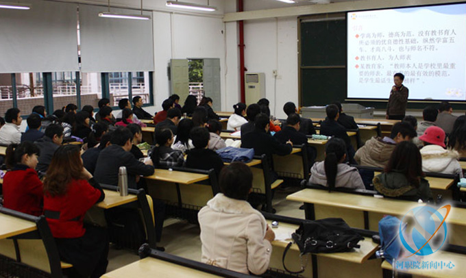 黄海林在讲座上指出,“学高为师,德高为范”,作为一名老师必须要学会“敬业、乐业、乐群”,将本职工作尽力做好,严于律己,宽容待人,处理好与家人、领导、同事的关系,融洽相处,乐业乐群。同时,黄海林要求每位老师必须先育人后教书,从自身的行为树立良好的师德师风,引导学生良好发展,提高学校的综合素质。