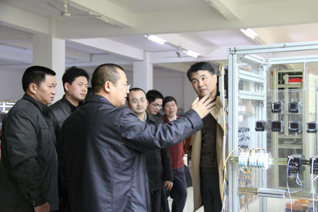 陈德清一行受到热烈欢迎,在雅达公司王煌英董事长等公司领导的陪同下,参观了该公司与我校教师共同开发的实训系统,双方就校企合作开发产品进行深入交流。陈德清充分肯定了校企合作的模式和项目组的工作,指出开发、应用本实训系统的根本目的在于提高学生技能,并指示电信学院、项目组抓紧推进项目,落实配套教材与实训指导书的编写,将实训系统融入相关专业教学标准,争取尽快将实训系统应用到教学中。