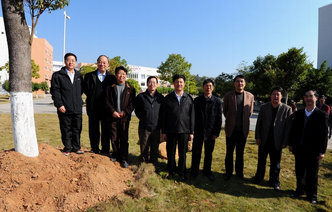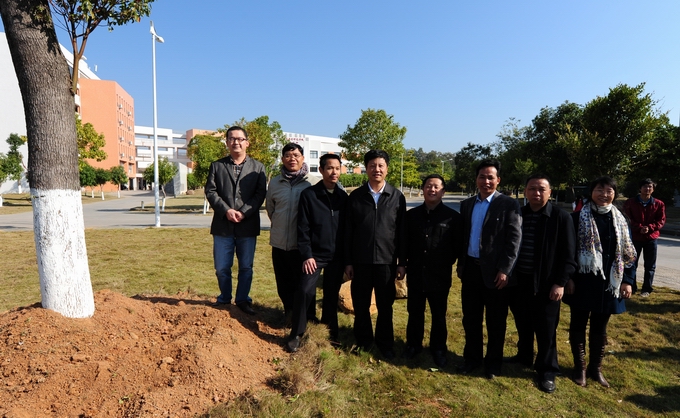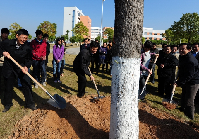 12月12日上午,临近换届之际,河源市委书记陈建华莅临我校,与学校党政领导班子及师生代表依依惜别,并亲手种下香樟树作为纪念,还亲笔为我校题“种德”一词。