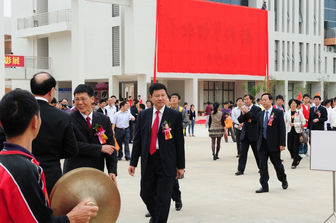 市委书记陈建华等领导莅临 我校党委书记高仁泽热情接待