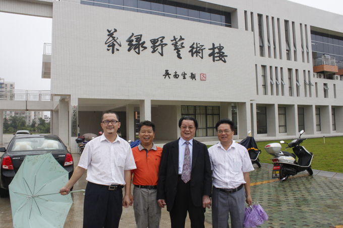 10月13日,我校校友、著名画家叶绿野教授一行来访我校,我校领导班子热情地接待了一行,并在贵宾室召开交流会,共同商议叶绿野艺术楼落成典礼事宜及画室布置情况。