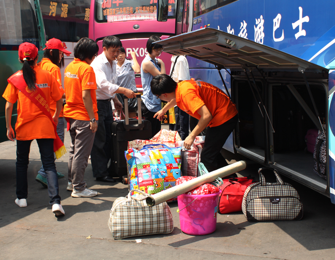 同时,志愿者还在汽车站临时搭起了新生和家长候车帐篷,并配备了饮水和一些医疗物品,为新生和家长提供最及时最贴心的服务。他们热情地解答新生家长的各种疑问,使家长与新生们对我校及河源有更深的了解。高温和繁重的工作使志愿者们汗流浃背 ,但他们依然微笑着坚持在自己的岗位,以饱满的工作热情和细致的服务态度,使工作井然有序地进行着。
