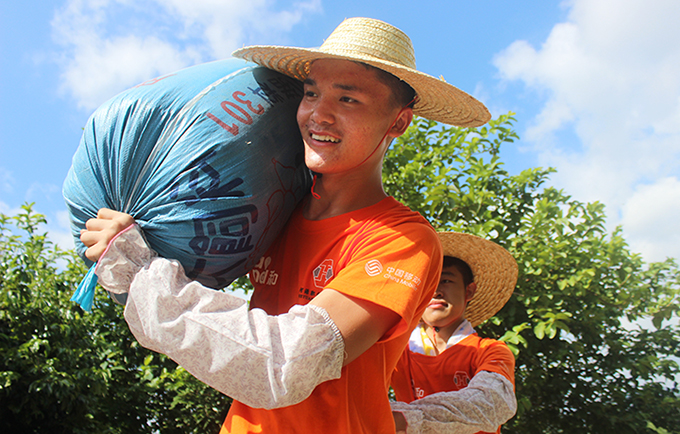 七月,正是稻谷成熟的季节。“三下乡”期间,烈日当空,科技支农队的志愿者们分批在村民家里、下石小学及稻田间帮助村民晾晒稻谷。在早晨,他们俯下腰,用耙子将稻谷摊开铺平晾晒。在傍晚,他们把稻谷装进袋,并帮助村民把稻谷扛上车,顺利完成晾晒稻谷任务。队员们忙得不亦乐乎,志愿服也被汗水渗透。截止到18日,志愿者们已帮助居民晾晒稻谷73袋。科技支农队的志愿者们表示,即使再苦再累,只要能帮助到村民,他们就很开心。在下石的土地上,科技支农队身着橙色的志愿服,用实际的行动助力村民。