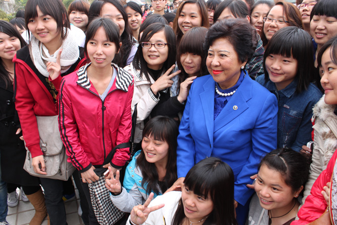 3月5日,孙中山先生的孙女孙穗芳博士抵达我校出席孙中山铜像揭幕仪式,并现场捐赠《国父孙中山先生纪念集》、《我的祖父孙中山》等书籍及题词“天下为公”的书法作品。副市长叶维园出席仪式。
