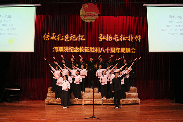 据悉,此次典礼旨在倡导我校广大团员青年学习先进,争做“六有”大学生。此次汇报演出与我校纪念长征胜利八十周年朗诵会相结合,以诗歌朗诵的形式缅怀红军长征的伟大壮举,宣传长征的伟大精神,激发学员们的爱党爱国热情。