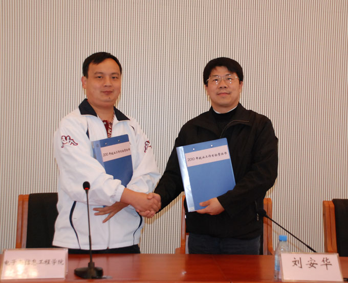 4月8号,我校在行政楼召开了2010年毕业生就业工作会议。刘安华校长在会议上作了“同心同德,共促毕业生充分就业”的讲话,并与各院系第一负责人签定《BTY.COM2008年院系毕业生就业工作目标责任书》。