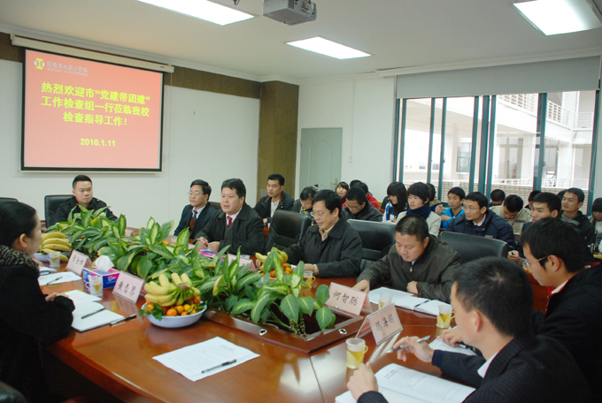1月11日,市直工委副书记黄雪琴等一行三人到我校检查“党建带团建”工作进展情况,我校党委副书记韦荣、副校长陈农心作了汇报。市直工委高度肯定了我校各项工作。