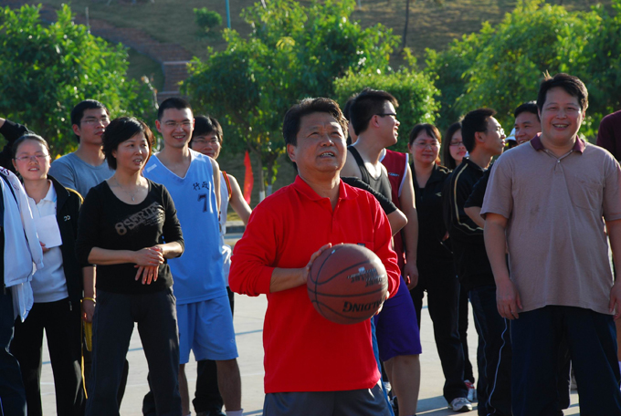 黄向明副校长在比赛中准备投篮