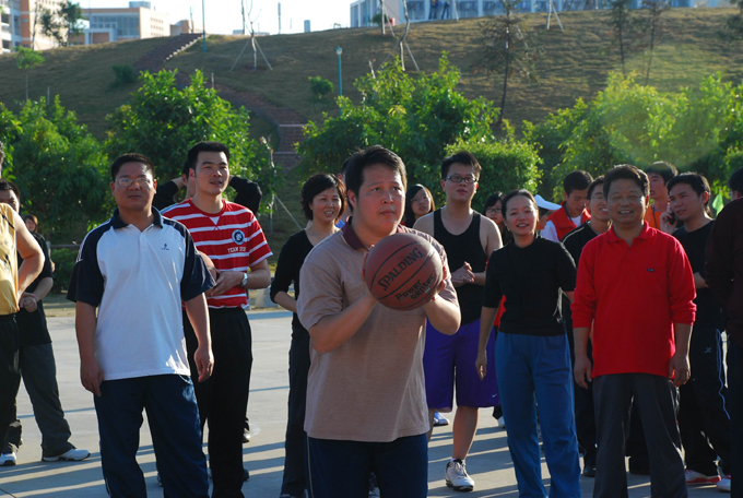陈农心副校长在投篮接力比赛中“认真瞄准”