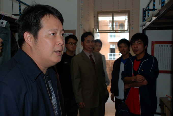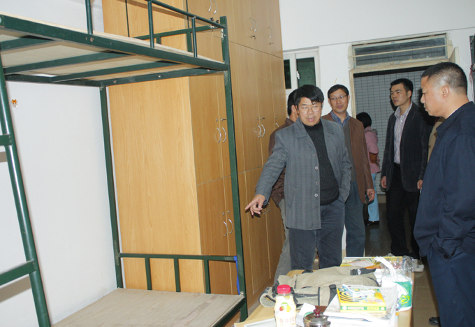 11月25日晚上,我校校长刘安华深入学生宿舍B区检查指导甲型H1N1流感防控工作和了解宿舍卫生情况。校办、学工处、后勤处、人文学院相关人员陪同检查。